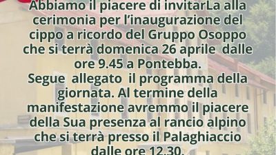 Il Gruppo alpini di Pontebba inaugura un cippo dedicato al Gruppo artiglieria da montagna “Osoppo”. Leggi tutto...