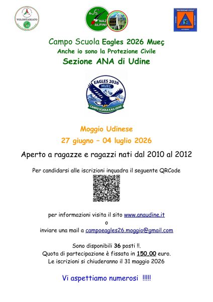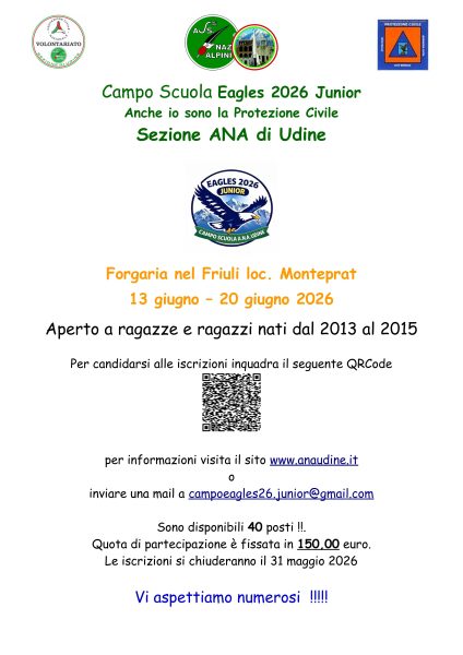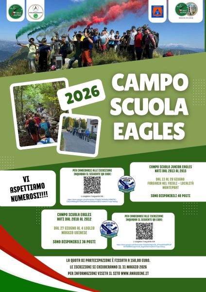 Quest’anno la Sezione alpini di Udine organizza due Campi scuola “Eagles”, uno a Monteprat (Forgaria del Friuli) e uno a Moggio Udinese.