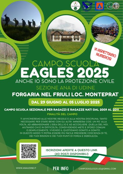 E’ iniziato il Campo scuola “Eagles 2025, anche io sono la Protezione Civile” organizzato dalla Sezione di Udine nella località di Monte Prat (Forgaria del Friuli).