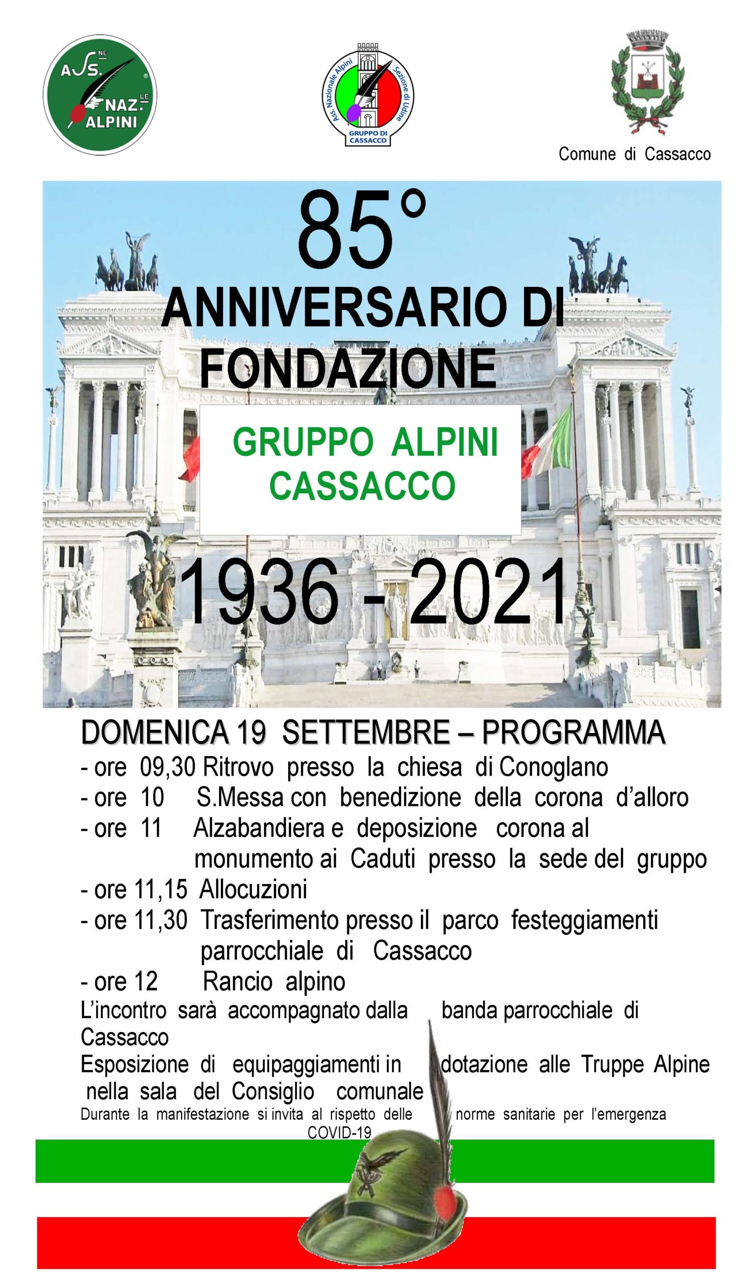 Il Gruppo alpini di Cassacco festeggia l'80° anniversario di fondazione. 80° di fondazione Cassacco (locandina)