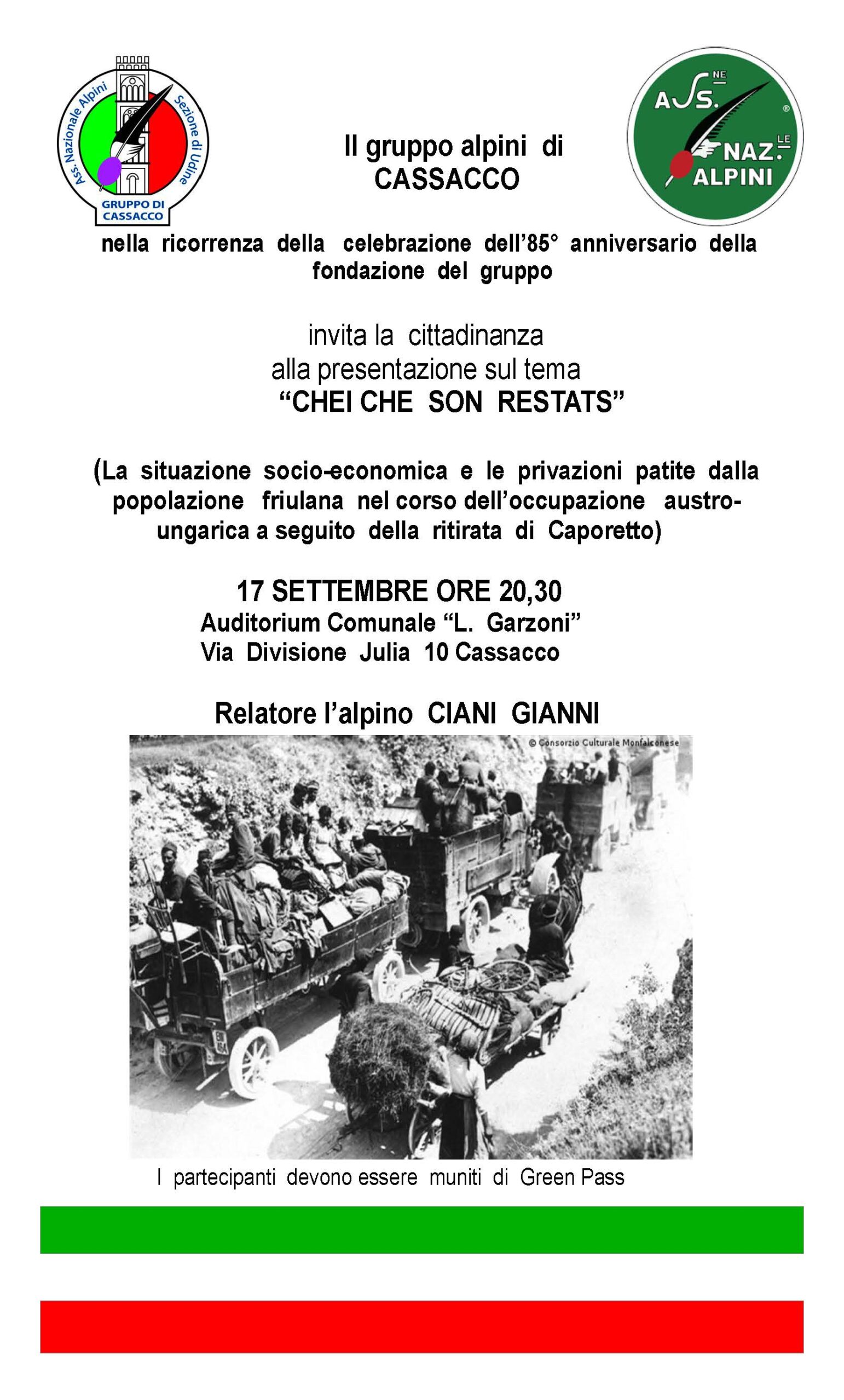 Il Gruppo alpini di Cassacco, in occasione del suo 85° di fondazione, organizza una serata Leggi tutto...