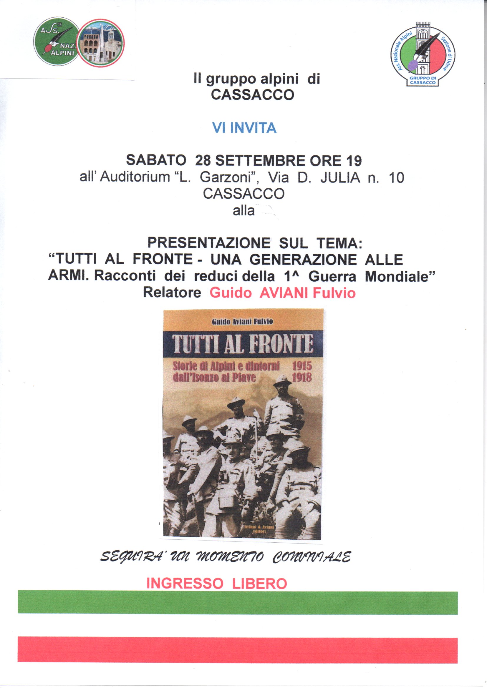 Il Gruppo alpini di Cassacco presenta il libro "Tutti al fronte - Una generazione alle Leggi tutto...