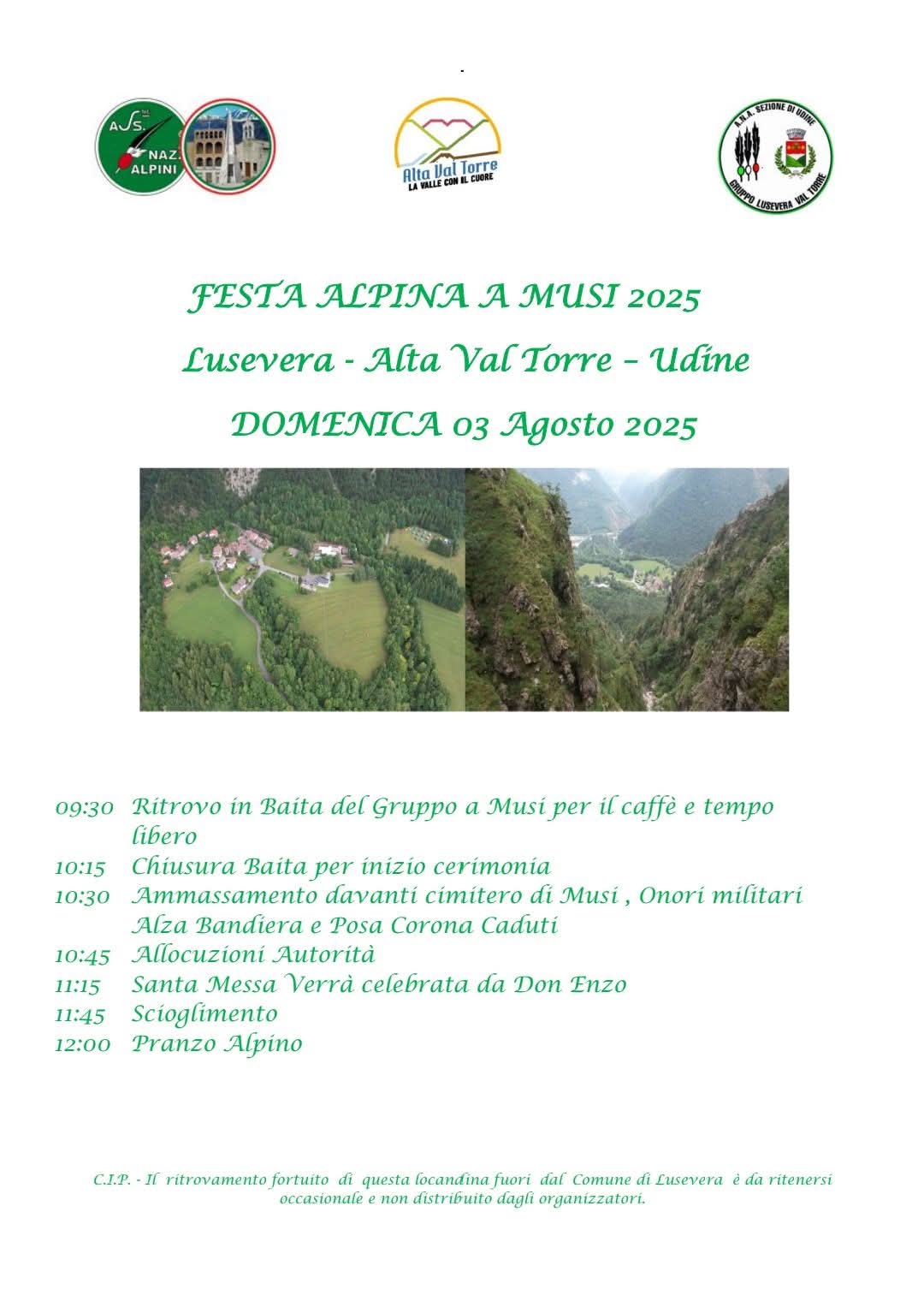 ![]() Il Gruppo alpini di Resiutta organizza la 44ª edizione della "Festa scarpona". ![]() Il Gruppo alpini di Forgaria nel Friuli organizza una Marcia Verde nell'altopiano di Monte Prat. ![]() Il Gruppo “Sella Buia” di Stolvizza di Resia organizza l’annuale Festa alpina giunta oramai alla Leggi tutto... ![]() Il Gruppo alpini di Lusevera Val Torre organizza domenica 3 agosto il tradizionale incontro alpino Leggi tutto... |