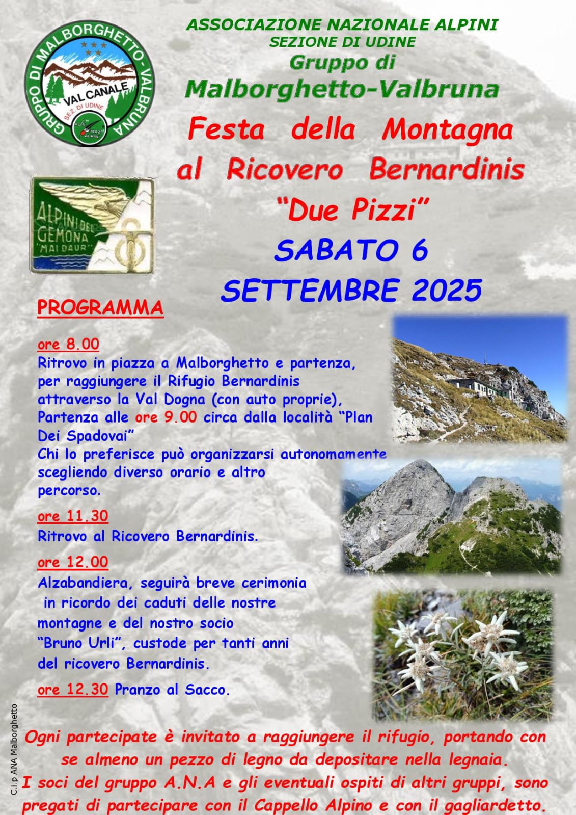 Festa della Montagna al Ricovero Bernardinis "Due Pizzi" organizzata dal Gruppo di Malborghetto-Valbruna. Leggi tutto...
