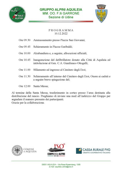 Il Gruppo alpini di Aquileia festeggia il 90° di fondazione.