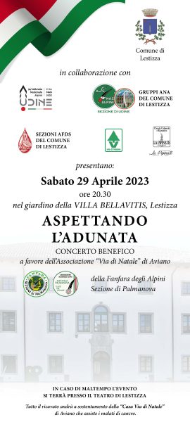 La Sezione Ana di Udine, in collaborazione con l’amministrazione comunale e altre associazioni, organizza il concerto “Aspettando l’Adunata”.