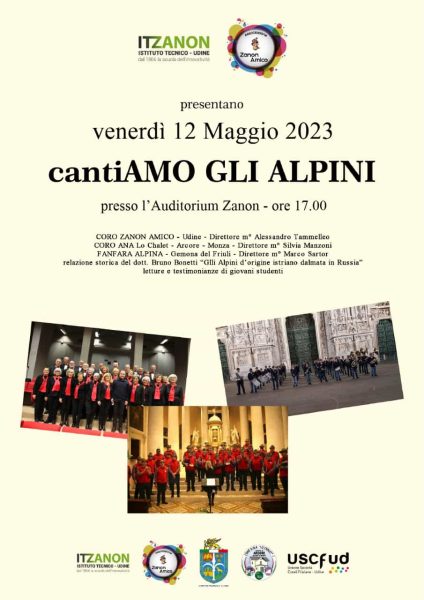 L’Istituto tecnico Zanon di Udine organizza la serata “cantiAMO GLI ALPINI” con la partecipazione del coro “Zanon amico”, del coro Ana “Lo Chalet” e della fanfara alpina di Gemona.