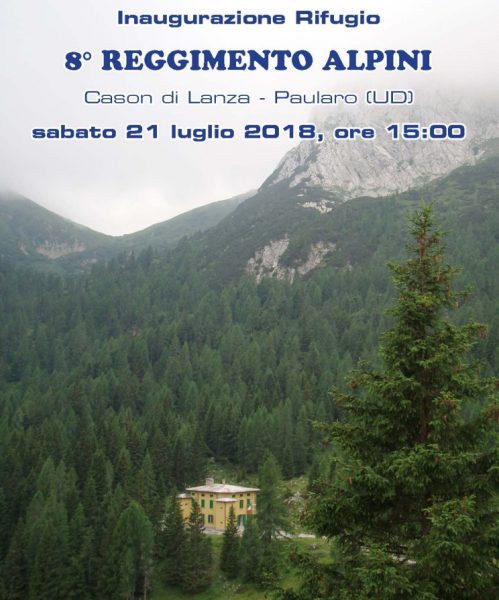 La Sezione di Udine, il Comune di Paularo e l’8° Reggimento Alpini inaugurano il restaurato rifugio intitolato all’8° Reggimento Alpini.
