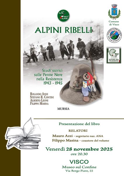 La Sezione alpini di Palmanova, in collaborazione con il Gruppo di Visco, presenta il libro: Alpini ribelli. Studi storici sulle Penne Nere nella Resistenza”.