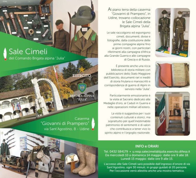 La Brigata alpina “Julia”, in occasione dell’Adunata nazionale, apre le sue Sale Cimeli all’interno della caserma Di Prampero a Udine.
