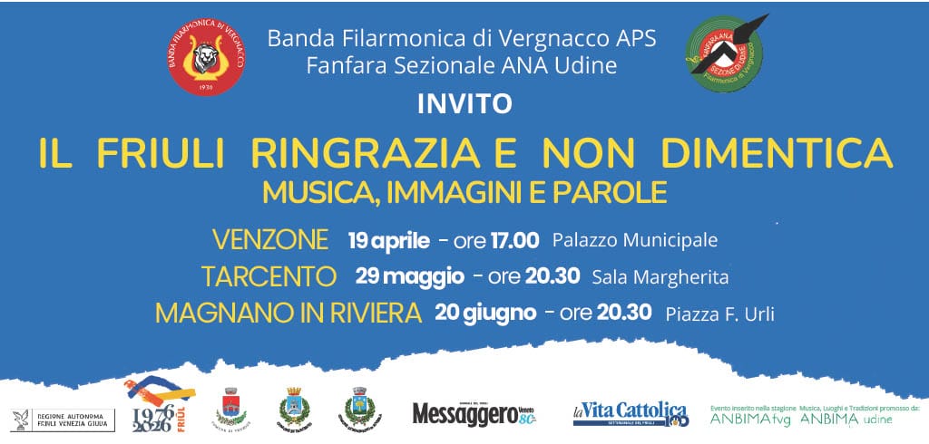 In occasione del 𝟓𝟎° 𝐚𝐧𝐧𝐢𝐯𝐞𝐫𝐬𝐚𝐫𝐢𝐨 𝐝𝐞𝐥 𝐭𝐞𝐫𝐫𝐞𝐦𝐨𝐭𝐨 del Friuli la Fanfara sezionale di Udine propone Leggi tutto...