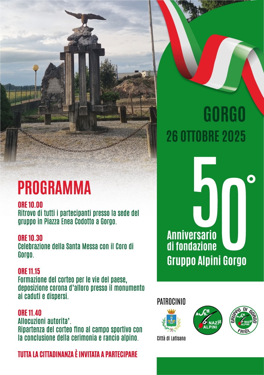 Il Gruppo alpini di Gorgo di Latisana festeggia il 50° anniversario di fondazione.